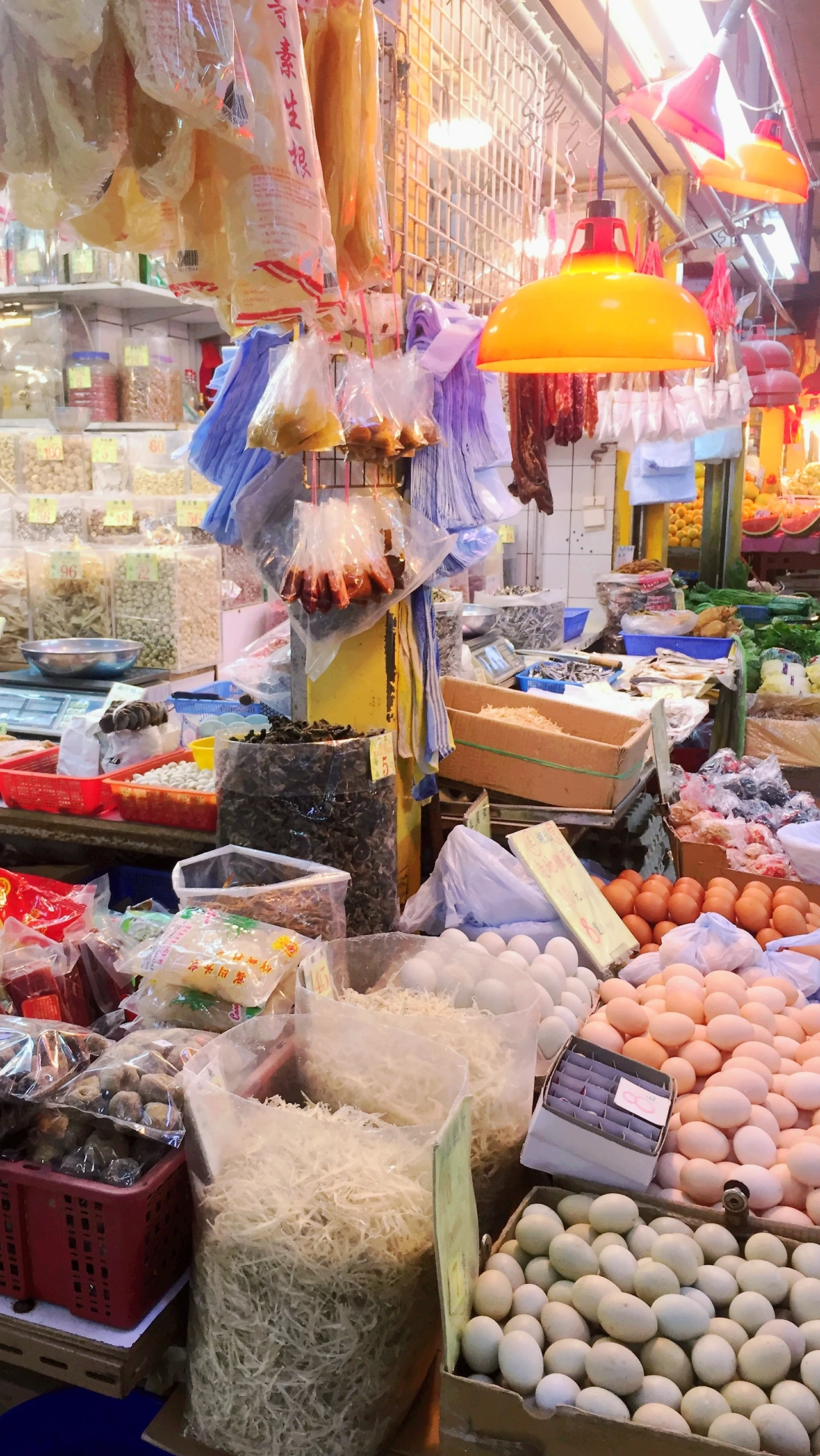 무엇인가 홍콩 특유의 냄새에 재래시장의 향기가 더해져서 훅 들어왔다. 1층에는 생선가게와 정육점, 냉동식품 가게 등이 있어서 더욱 다채로운 향기가 났다. 한 층 올라가면 채소와 과일가게가 있었다. 수조 속에서 신나게 꼬리를 흔들고 있는 물고기나 큰 게, 조개류 등 수산물은 우리나라에서 보던 것과 종류가 조금 달라도 낯설지는 않았다. (수산물 가게 구석의 새장 같은 곳에 들어있던 두꺼비 친구들은 조금 당황스러웠다) 그런데 정육점 앞에서는 멈춰 설 수밖에 없었다. 덜 손질된 고기들이 여기저기 걸려 있고 한쪽에서는 아직 피도 흐르고 있었다. 아, 고기 부산물도 걸려 있었다. 살림 내공 제로인 왕초보 새댁의 눈에는 너무 무서웠다.