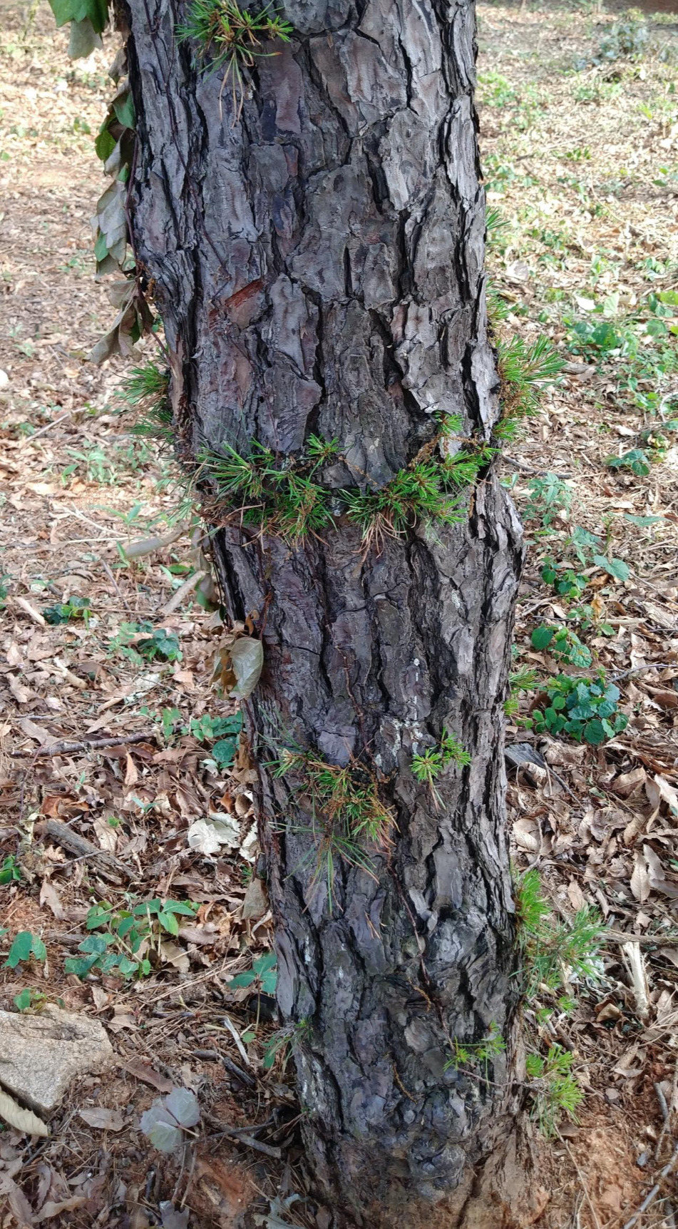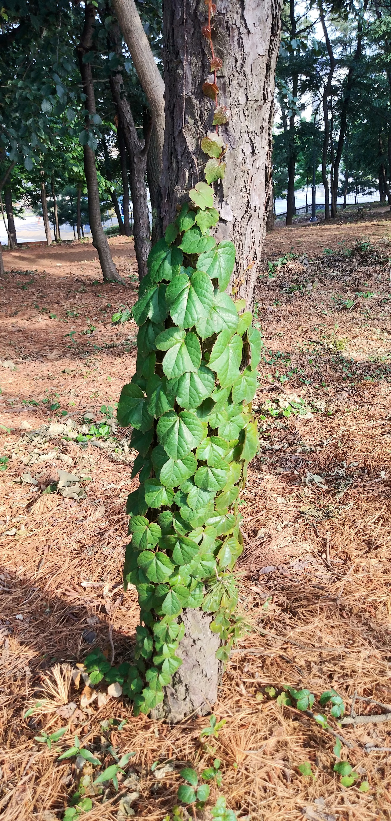 나무 기둥의 빈 곳을 따라, 새 순이 조금씩 나와서 새순 띠를 두르고 있다는 느낌이 들기도 해요.