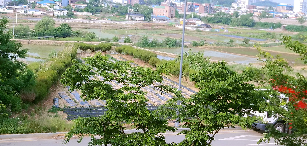 논에는 모내기가 끝났고, 밭에는 새로운 작물을 준비하는지, 검은 비닐이 씌워져 있네요. 산, 밭, 들도 조금씩 바람을 타고 푸르게 변신하는 중인 거 같아요.