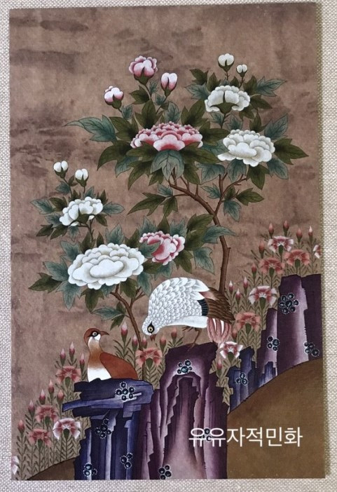 모란은 부귀영화, 메추리는 편안함을 의미해요. 새는 한상으로 부부의 금슬을 표현하셨다고 해요. (feat 유유자적)