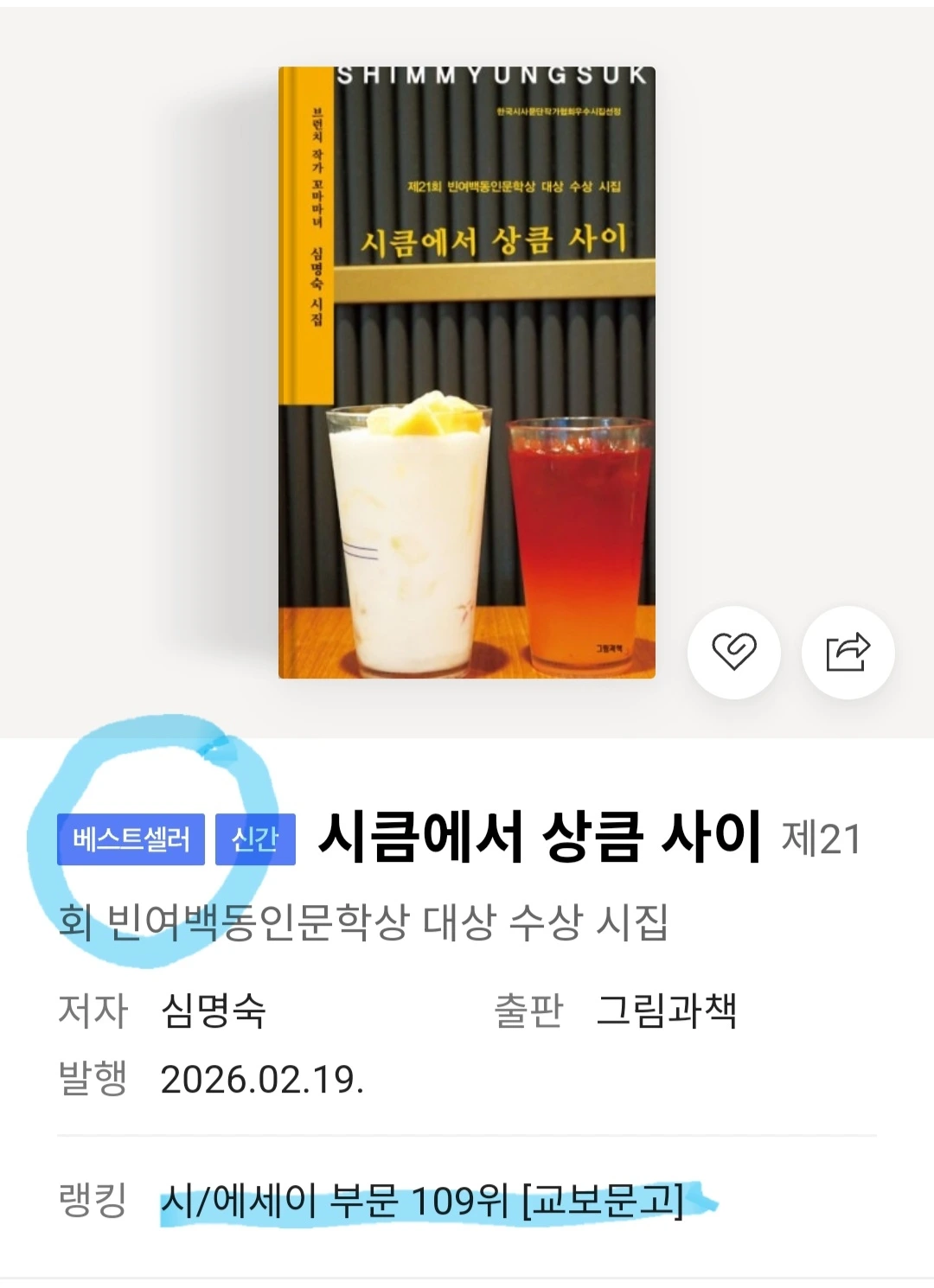 지금 저의 시집은 교보문고 순위가 이렇게 되었네요. 저의 첫 시집을 사랑해 주셔서 감사합니다.
