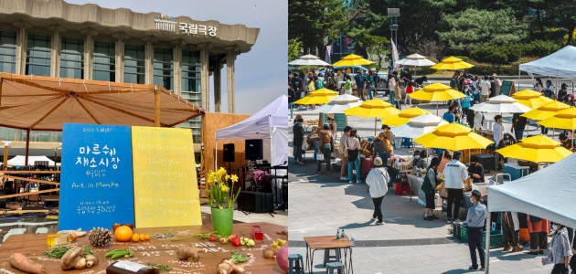 이젠 대화로 이루어지는 시장을 너머 국립극장과 함께 친환경 농산물도 사고 공연을 볼 수 있는 문화시장으로 발전하고 있죠. 매월 마르쉐 시장 주제에 따라 농부, 요리사, 수공예가 40여 팀과 아티스트 3팀이 참여해 풍성한 커뮤니티를 만들고 있는데요. 건강한 삶을 만드는 문화 아이콘이 된 마르쉐 시장이 궁금하다면 오는 5월 20일 국립극장을 방문해 보세요! [아트 인 마르쉐 바로 가기]