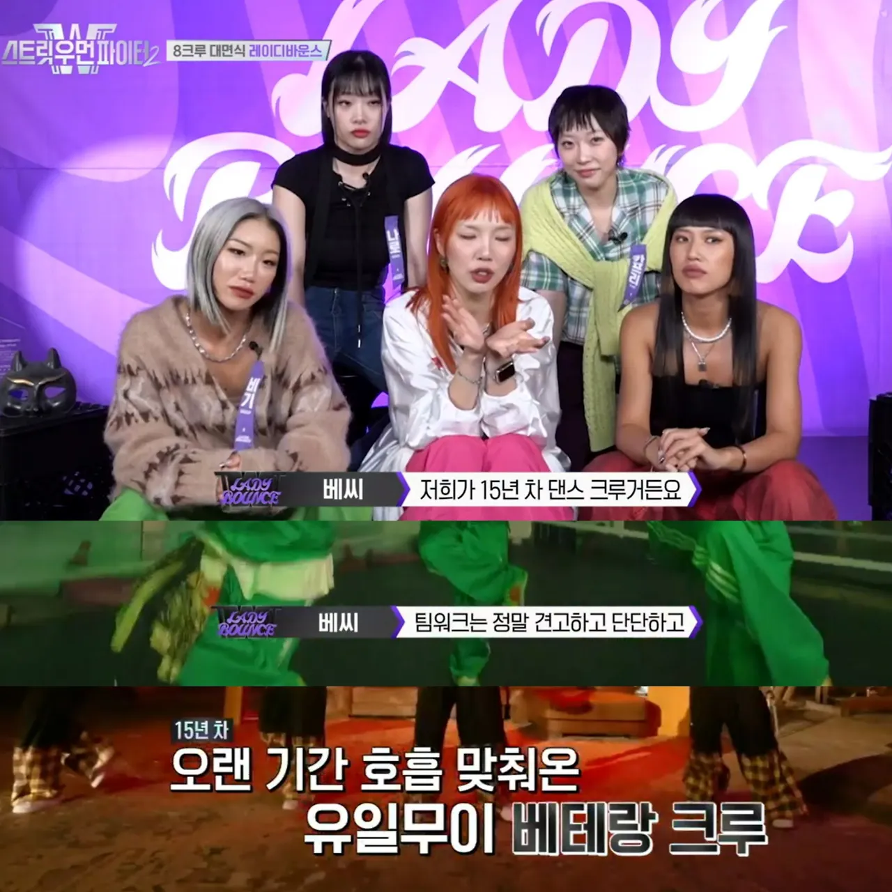 레이디바운스(이하 레바)팀은 유일무이한 15년 차 댄스 크루이다. 스우파2에서도 댄서 간의 과거 갈등이 그려지고, 스우파1에서도 팀이 쪼개지는 모습이 자주 비추어진 만큼, 댄서씬에서 오랜 기간 한 팀을 유지한다는 것은 한 회사를 15년 다니는 것보다도 어려운 일로 보였다. 그렇기에 15년 차 댄스크루라는 점은 꽤나 독특하고 그들의 강점이 '팀워크'에 있음을 짐작할 수 있게 하는 요소이다.