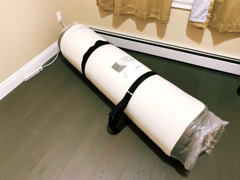 가장 시급한 게 침대였는데 보름 동안이나 맨바닥 생활을 하다... 겨우겨우 시간을 내서 매트리스 먼저 사 왔다. 세상에는 참 신기한 것들이 참 많다. 매트리스가 저렇게 동그랗게 말려있다. 스프링 침대인데 말이다.