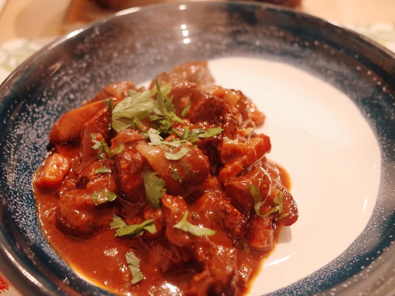 고랑이와 진하고, 깊은 맛이 입안에서 팡팡 터지면서 어루만져 주는 듯한 뵈프 브루기뇽을 먹으며 그가 말한 '손맛'에 대한 이야기를 계속 이어갑니다. 그의 어머니가 레시피 없이 해주었던 음식들, 그리고 제가 이렇게 글로 적을 수밖에 없었던 정확한 레시피가 없는 이야기들- 그리고 오늘 뵈프 부르기뇽이 유난히 맛있다고 그에게 마음껏 칭찬을 해주었더니, 이 특별한 뵈프 브루기뇽의 이유를 그는 속삭이듯이 말합니다.