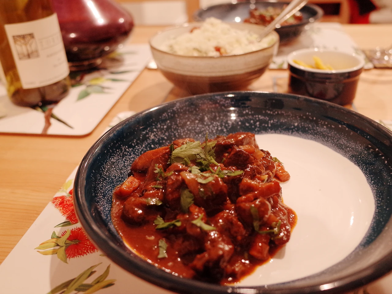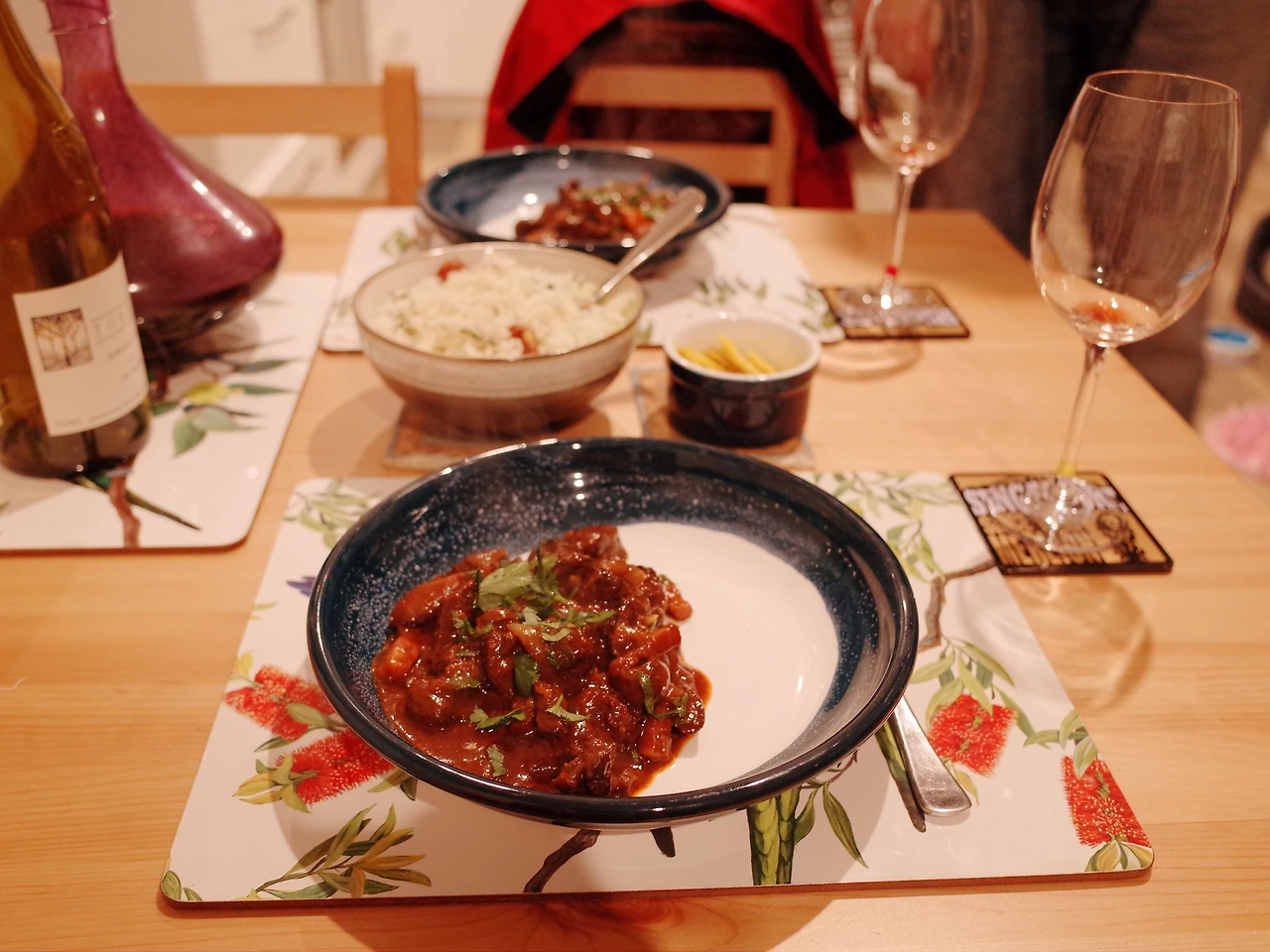뚝딱뚝딱 하나씩 요리과정을 끝내고 커다란 냄비에 제법 깊게 향이 우러나는 뵈프 부르기뇽을 오븐에 밀어놓은 고랑이는 잠시 식탁에 앉아 오븐에서 뵈프 부르기뇽이 잘 익기를 함께 기다립니다.