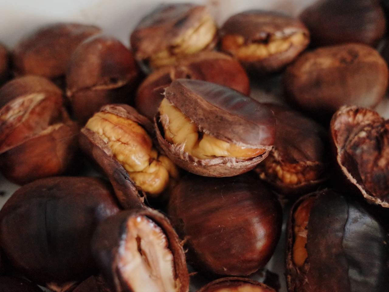 통통하고 빛깔 좋은 군밤을 물에 깨끗이 씻어준 뒤, 20분 정도 물에 담가 둡니다. 벌레 먹거나 한 밤들은 이때 물에 동동 뜨게 되니 바로 제거해주기도 좋아요. 이제 만져보면 살짝 말랑해진 밤을 건져서, 면포로 남은 물기를 제거해줍니다. 미끌미끌하면 밤 껍데기 칼집을 넣을 때 손을 다칠 수도 있거든요. 반들반들 잘 씻어준 밤을 들고, 밤의 평평한 부분에 깊지 않게 속껍질을 가를 정도로 칼집을 손가락 한 마디 반 정도 길이로 넣어줍니다. 칼집을 넣는 동안 오븐을 예열해줍니다. 혹은 에어프라이어도 좋아요. 이제 칼집을 잘 넣어준 군밤을 뜨끈하게 구워줍니다. 온 집안에 따뜻한 온기와 치익-치익-토독토독 터지는 소리가 들립니다.