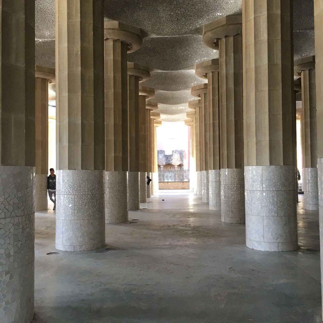 구웰 공원의 입구는 가장 상층부에서 시작했다. 그 시작인 산책길을 따라가면 방금 앉아 봤던 구웰 공원의 상징인 벤치가 있고 그 밑으로 위엄 있는 86개의 도리스식 기둥 (고대 그리스 건축 양식 중 하나로 주춧돌이 없으며 기둥이 굵고 간결한 것이 특징)들이 떠받치고 있다.