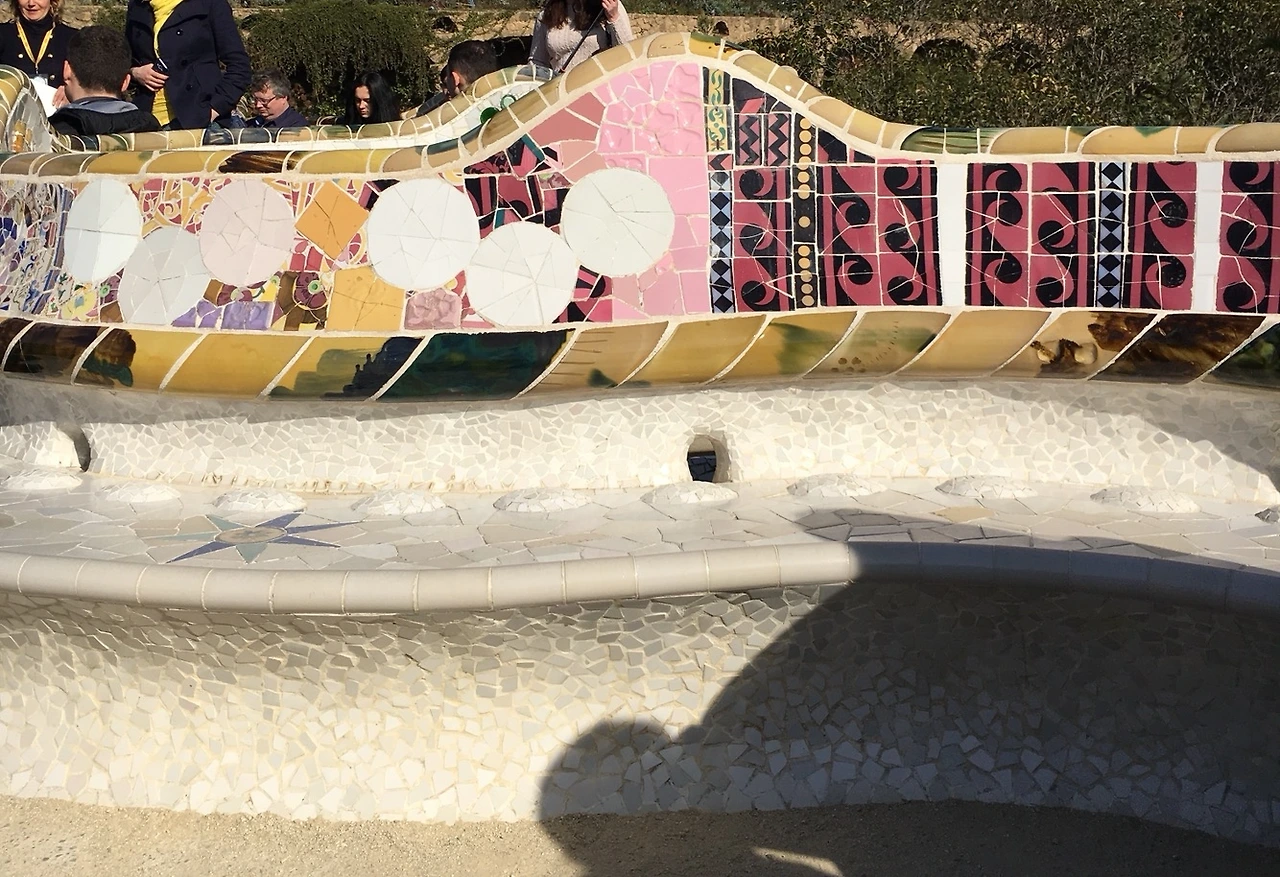 "가우디는 벤치를 설계하기 앞서 회반죽을 바른 의자 모양의 틀에 옷을 벗은 인부를 앉혀 신체 각 부위에 가해지는 하중과 형태를 측정했다."
