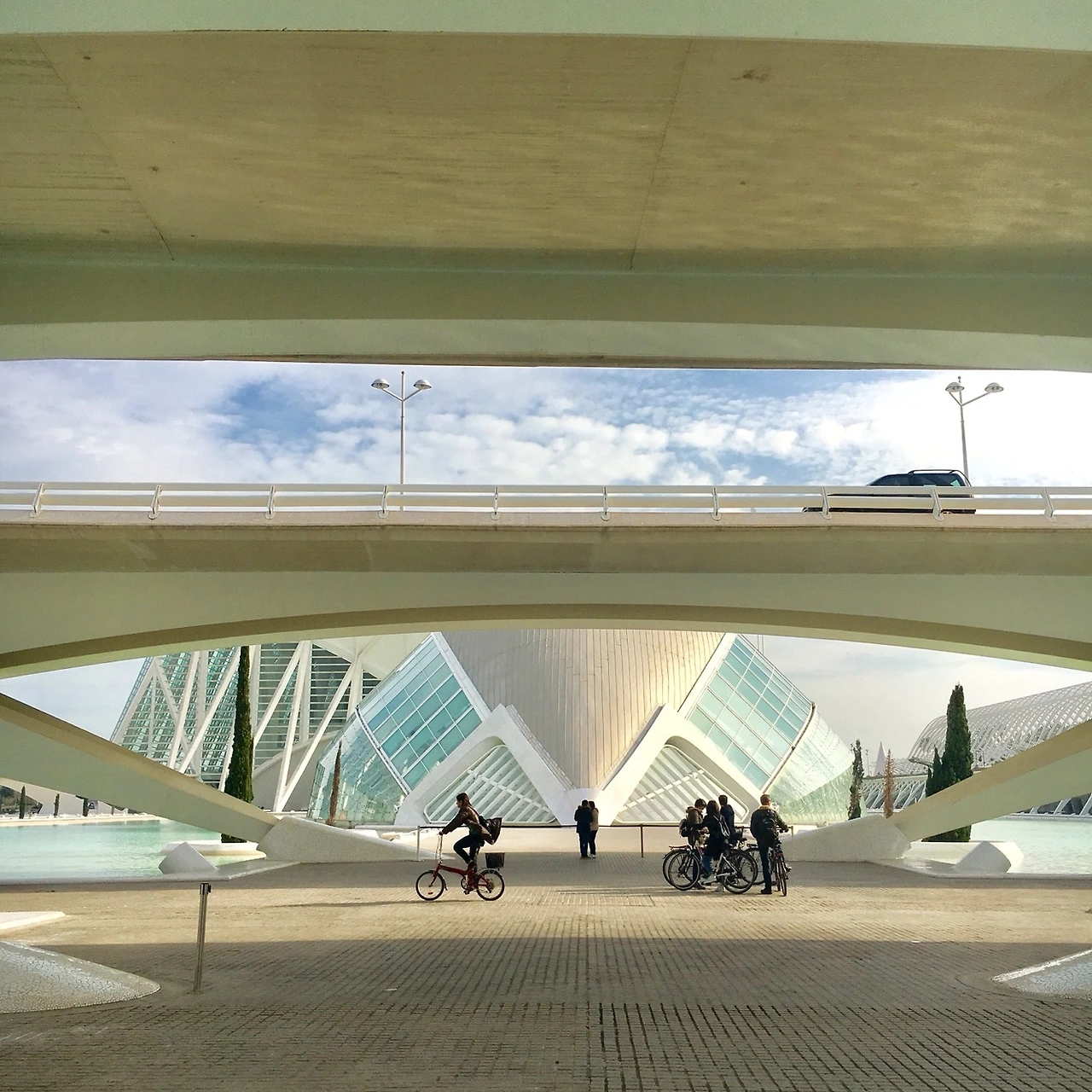 예술과 과학의 도시를 이루고 있는 여러 개의 건물에는 각각 과학 박물관, 수족관, 오페라하우스 등의 시설이 갖춰져 있었다. 나는 건물 안을 들어가 보는 대신 건물 외관을 관찰하고 주변 사람들을 바라보는데 많은 시간을 보냈다. 길가엔 관광하는 사람들, 자전거를 끌고 나온 사람들, 아이 손을 잡고 신기한 구경거리를 보여주고 싶은 가족들의 소소한 일상들로 가득했다.