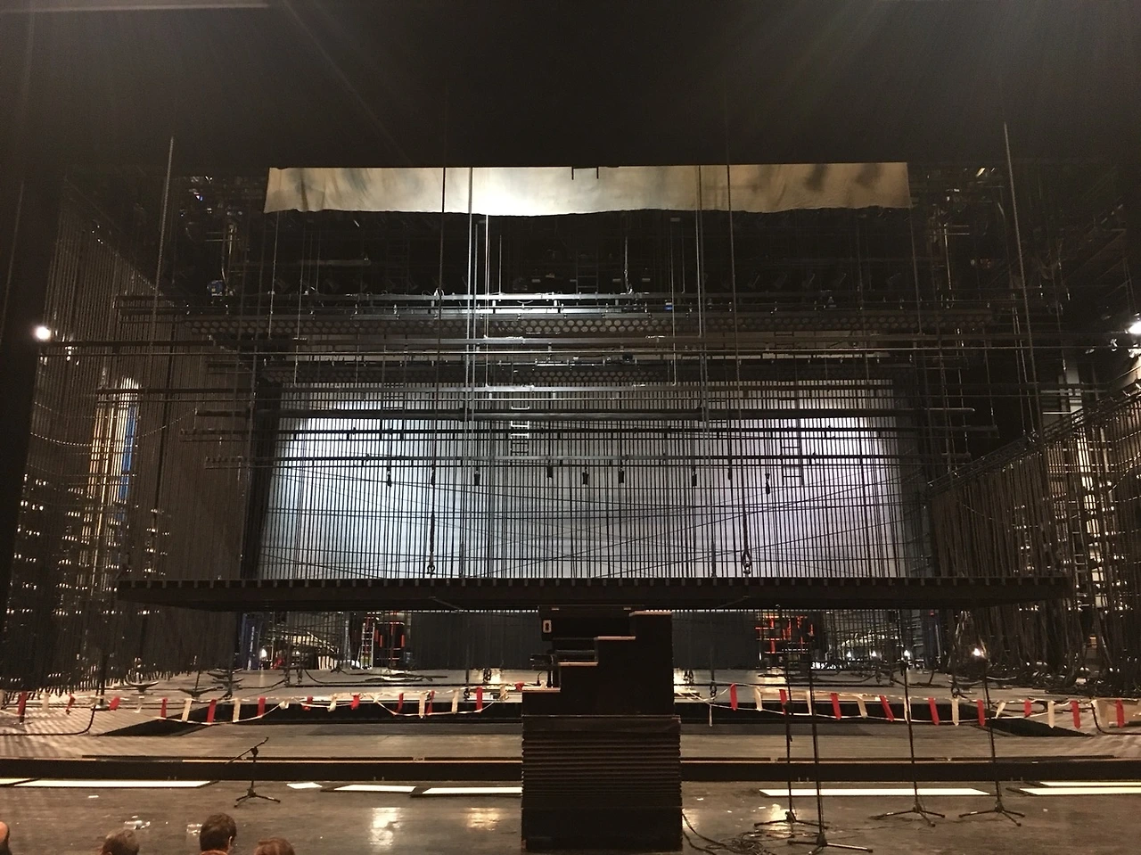 천장에는 각종 무대 세트나 무대 막, 조명 등을 걸 수 있는 바텐(Batten)들이 있다. 그것들은 극본에 따라 무대 감독의 사인에 맞춰 수직 이동 한다. 조명은 사이드에 있는 트러스(Truss)에도 설치할 수 있다. 무대 바닥으로는 상하로 움직 일 수 있는 장치(Lift)라던지 무대 지면보다 한 단계 낮은 앞쪽에는 오케스트라 단원들이 실시간으로 연주를 할 수 있는 공간, 오케스트라 피트 (Orchestra pit)가 있다.