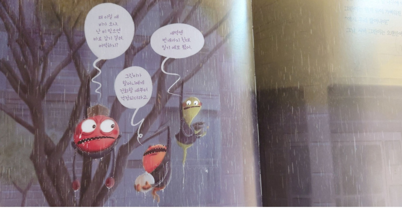 김영진 <걱정이 너무 많아> 걱정 괴물이 나무에 매달린 모습
