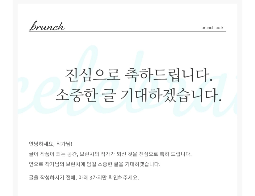겨울이 다가와 긴 외투를 꺼내 입을 무렵, 브런치에 작가 신청을 냈다. 낮 12시에 냈는데 오후 1시 45분. 두 시간이 채 안 걸려 알림이 와서 놀랐다. 브런치 작가가 되었다고 한다. 아이는 엄마 작가 된 기념으로 케이크 먹자 하고, 남편은 이거 유튜브처럼 돈 나오냐고 했다. 구독자가 생기고 라이킷 수가 늘었다. 댓글도 있다. 함께 하는 팀이 서로 응원해 구독자가 백 명을 넘겼다. 아직 초라한 내 브런치에 어울리지 않는 물거품 같은 숫자지만 힘이 된다. 그 해 겨울, 브런치 프로젝트가 끝나가면서 이제 어떤 동기가 나를 쓰게 할까 걱정했다. 안 쓸까 봐.