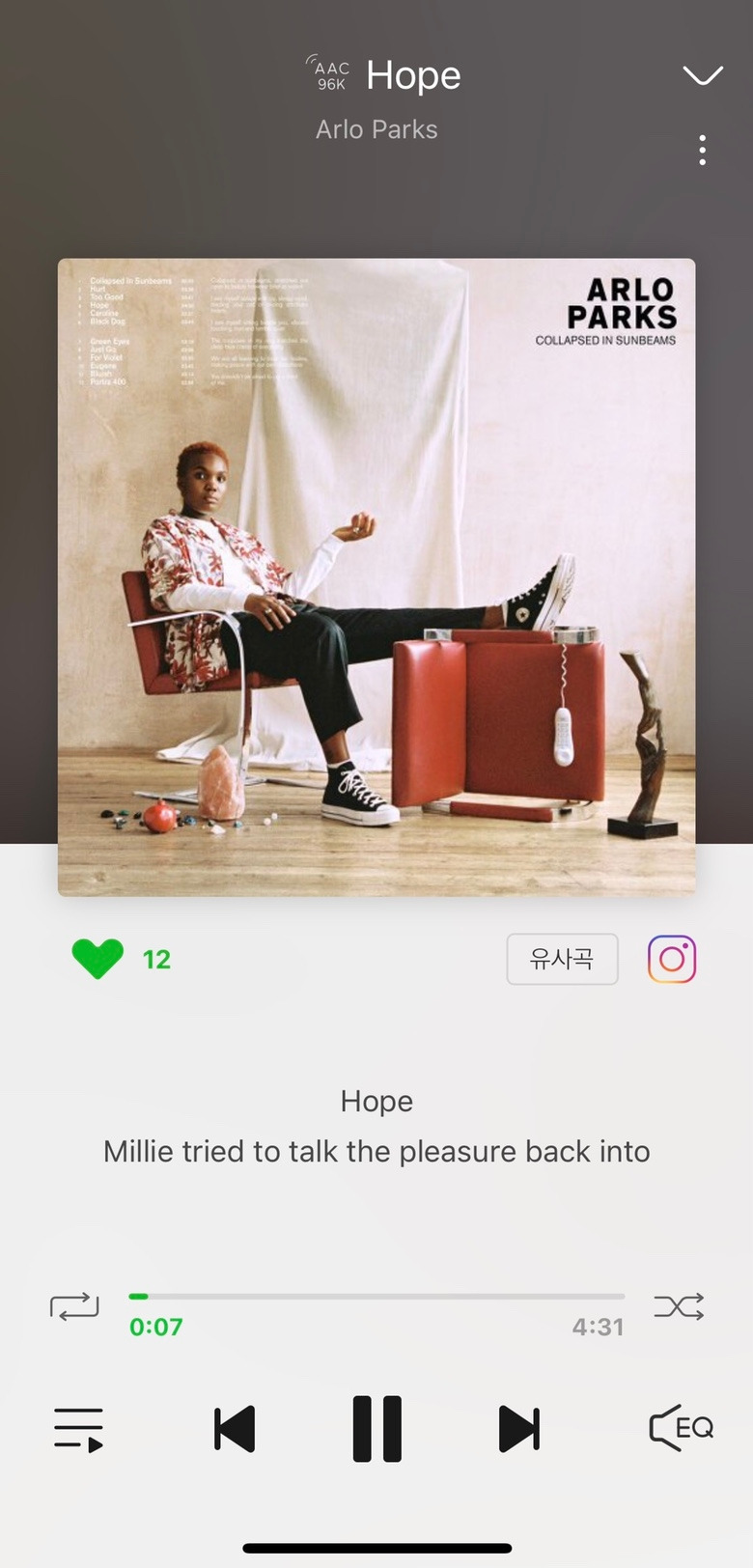 영국의 싱어송라이터이자 시인인 알로 파크스의 Hope, 시인이라 그런가 가사가 귀에 꽂혀요.
