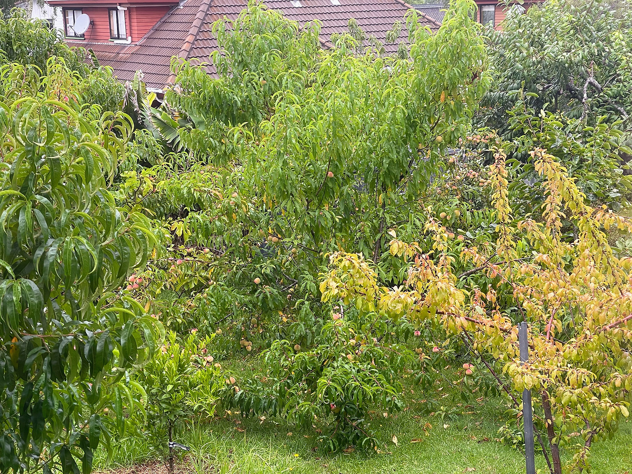 내가 오늘 좋아하는 가드닝 실컷 하고 아이들과 데크에 앉아 치킨 먹고 웃고 떠들고 즐거운 시간 보내고 또 내가 좋아하는 미싱도 하고 그리고 또 저녁 먹고 선선한 바람 불 때 다시 가든에 나가서 물을 주고 다시 가든 산책을 하는데 복숭아나무들 사이로 저 멀리 서쪽 하늘이 핑크빛 연보라색으로 물들어 있는 거야. 볼이 빠알간 수줍은 얼굴을 한 복숭아 열매들은 주렁주렁 매달려 있고 귤나무 무화과나무 모두 열매가 무럭무럭 자라고 예쁜 꽃들은 온천지에 자태를 뽐내는 나와 남편이 만든 우리만의 천국.