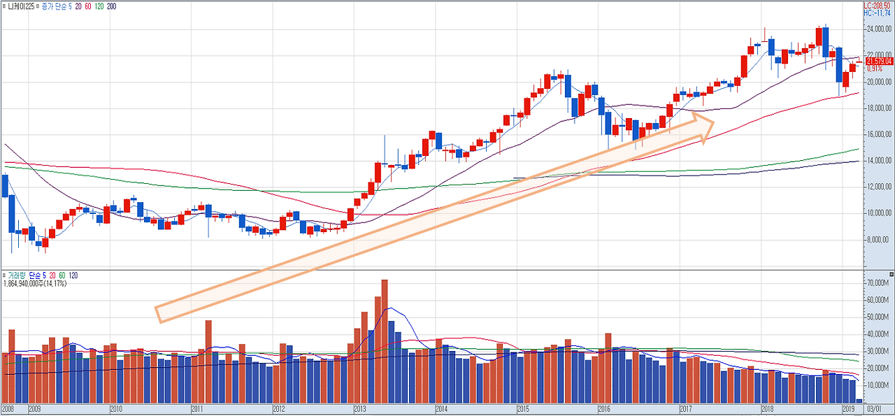 또한, 침체된 내수시장은 관광의 활성화로 해결해 버렸습니다. 실제로 일본 외국인 관광객 수는 2012년 836만 명에서 2018년 3119만 명으로 3.7배 증가했습니다. 돈을 잘 쓰지 않는 일본인 대신 외국인들이 국내에서 돈을 써주고 있는 셈입니다. 일본의 관광자원이 풍부하다는 점을 고려해 보았을 때, 한동안 이러한 관광객 추이는 쉽게 꺾이지 않을 것으로 보입니다. 또한, 2020년 도쿄올림픽을 앞두고 있으므로 오히려 그 수의 증가를 기대해 볼만도 합니다.