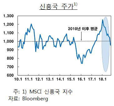 신흥국 투자를 고려할 때 현재의 증시 흐름도 중요합니다. 하지만, 무엇보다 투자하려는 국가와 글로벌 경제의 상황을 먼저 확인할 필요가 있습니다. 과거의 사례를 분석해 보면, 금융시장의 불안정성이 높은 국가의 경우 낮은 성장률, 만성적 재정∙경상수지 적자, 높은 GDP 대비 외채 비중 등의 취약 요인이 공통적인 현상입니다(과거 사례와 비교한 최근 신흥국 불안의 특징, 한국은행, 2018.11.16 참고).