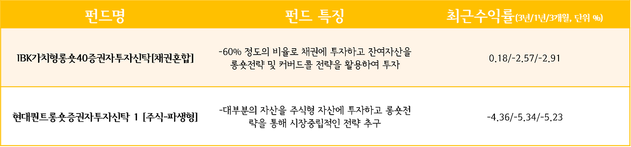국내에서 판매 중인 절대수익형 공모펀드 중 대표적인 상품을 모아 분류해 보았습니다.