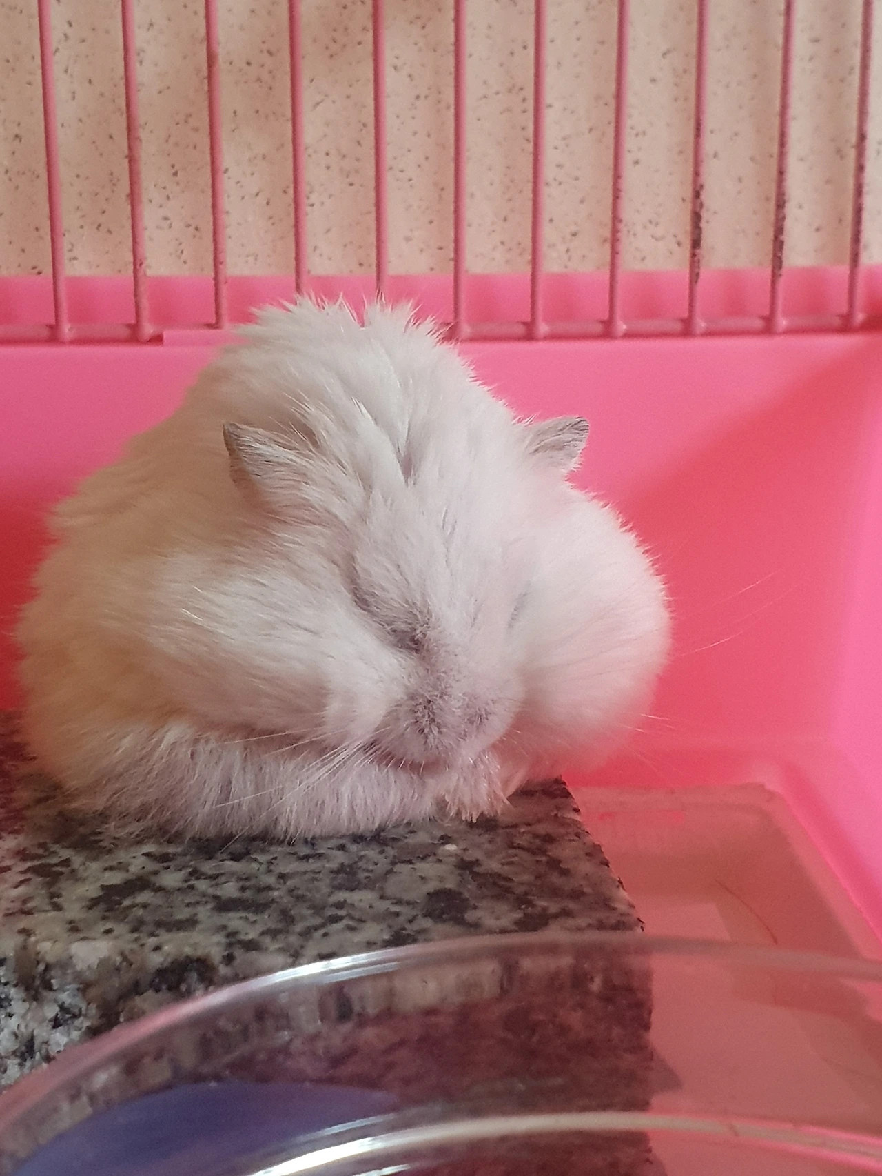 작은 체구에 몸을 웅크리고 자고 있는 모습이 귀여운 햄스터입니다.