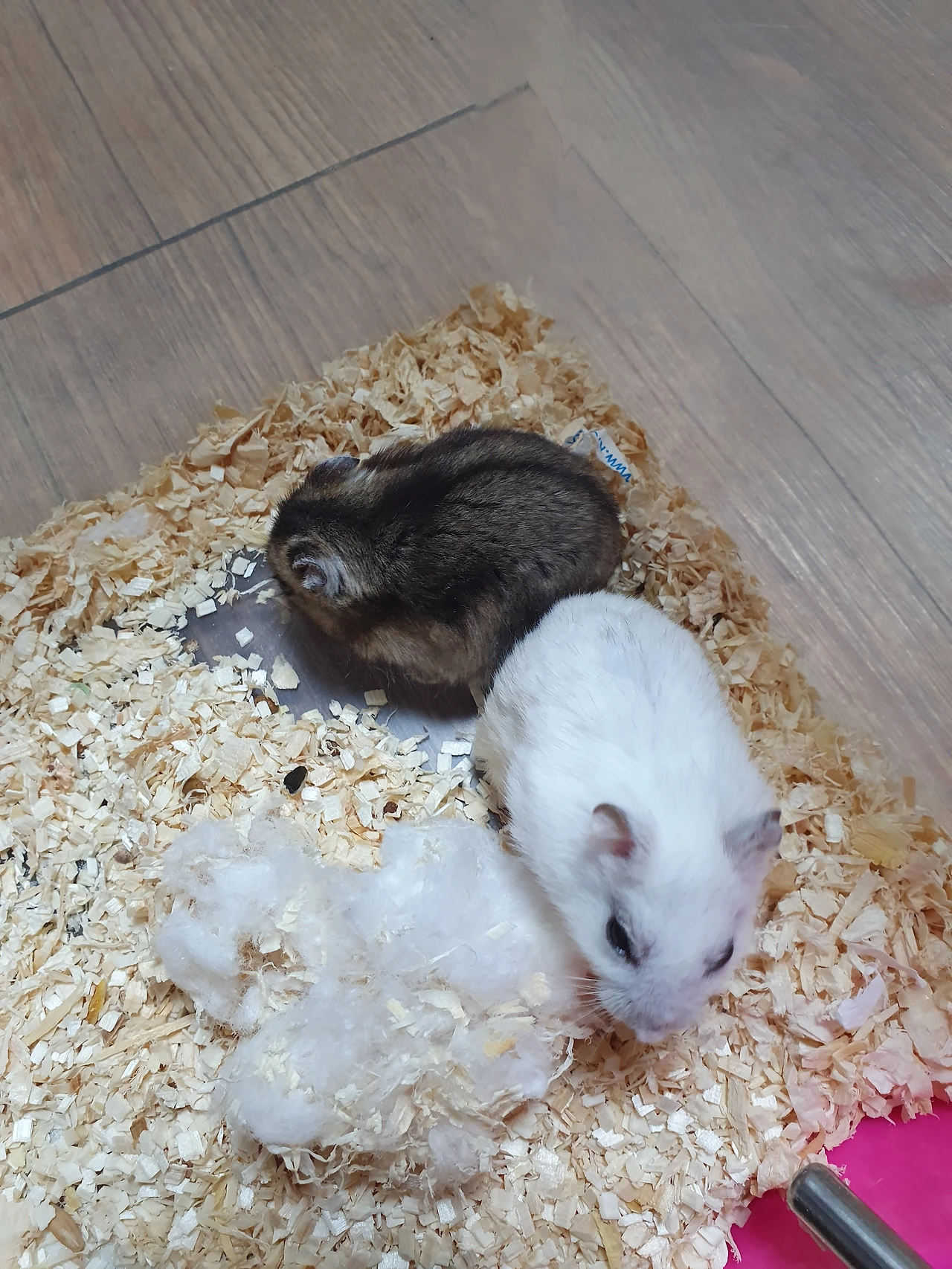 아이들이 편안하게 쉬도록 톱밥도 깔아주고 급수기도 넣어주고.. 여기가 어색해도 지내다 보면 좋을 거예요.