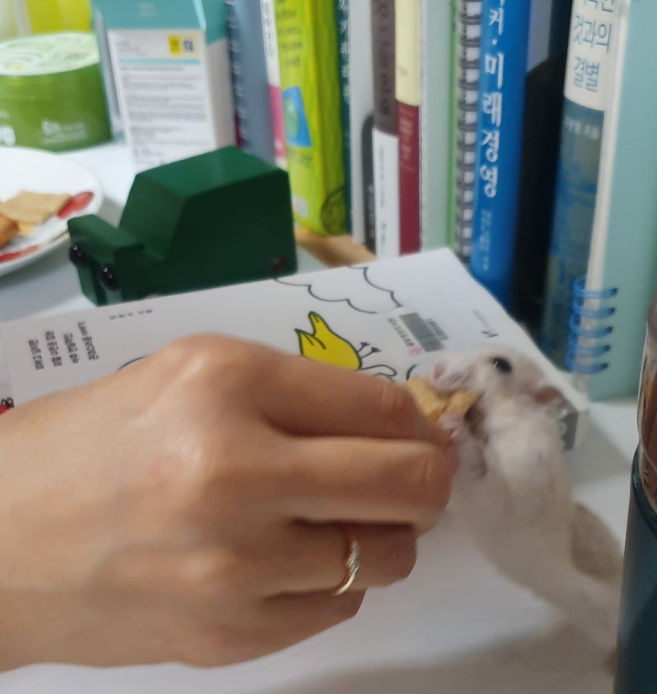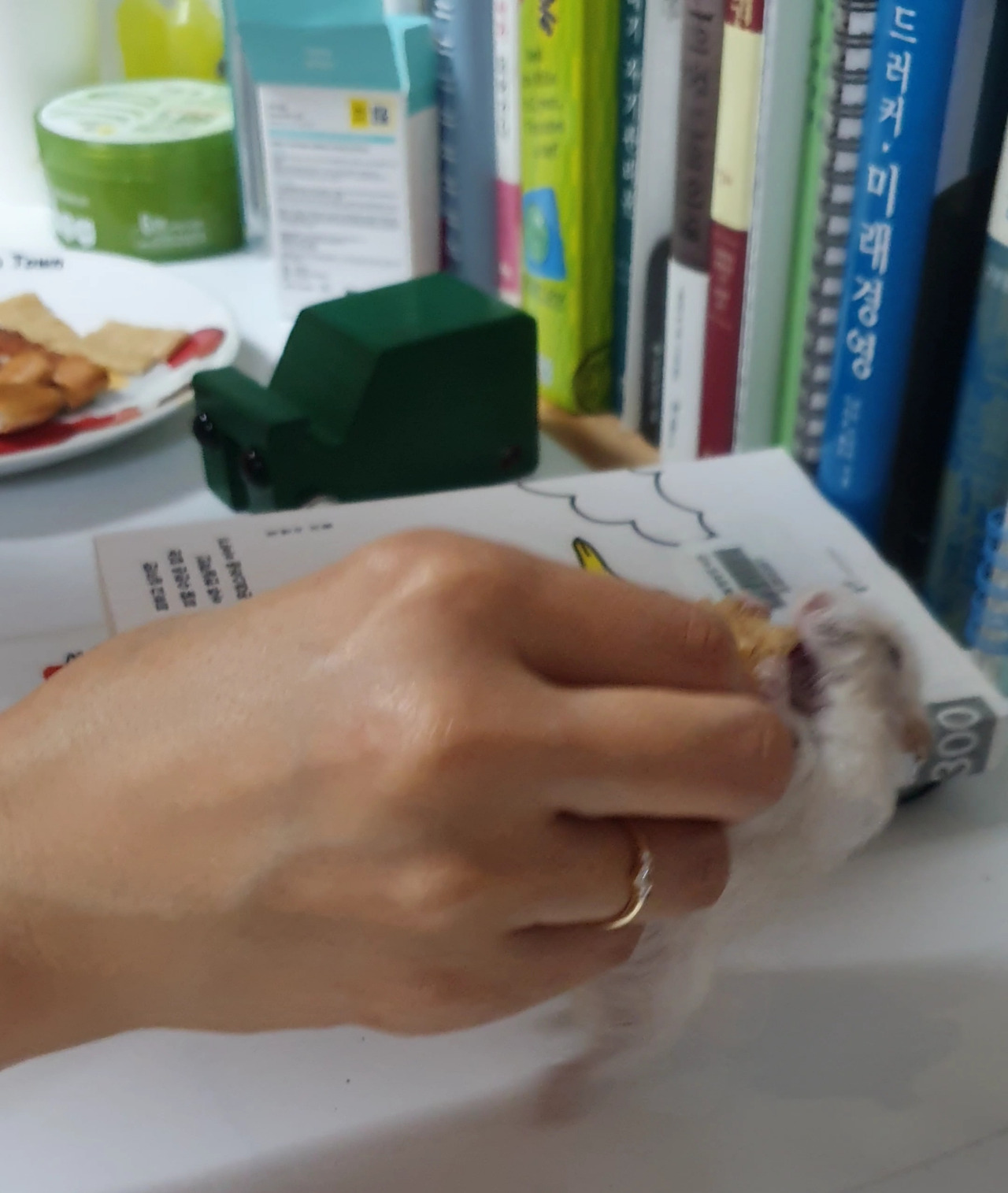 꼬막이에게 간식을 주었습니다.