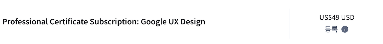 'Google UX Design' 하나의 강의만 수강하고 싶다면 $49(약 7만원)으로 구매 가능하다.