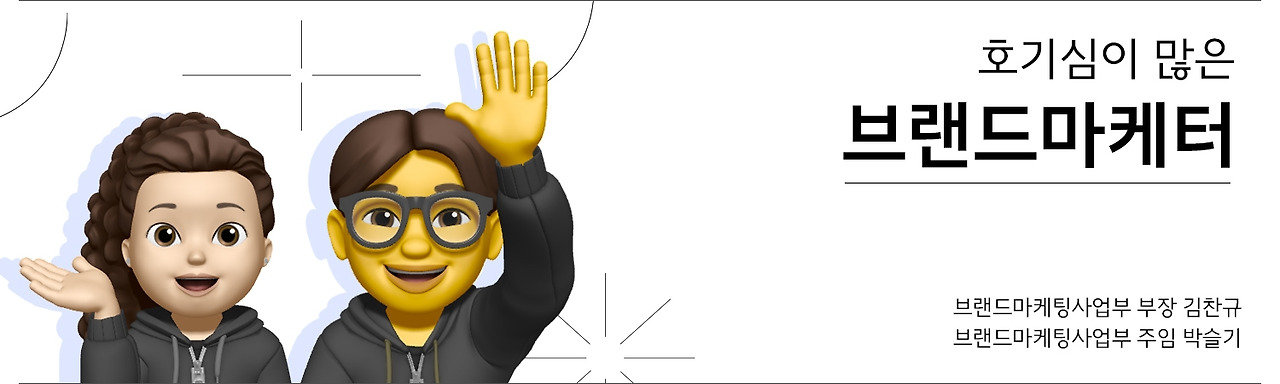찬규: 안녕하세요 저는 브랜드팀 팀장을 맡고 있는 김찬규 부장입니다. 팀에서 하는 다양한 브랜드 마케팅 활동들을 총괄하고 있어요. 보시면 아시겠지만 슬기님이 많은 걸 하고 있어요. ‘일당백’이죠(웃음).
