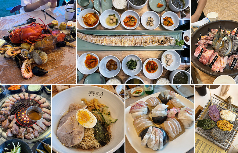 금강산도 식후경, 이건 플레이숍에서도 마찬가지였다. 단톡방에 가장 많이 올라온 사진은 바로 바로 음식 사진! 다들 하루에 세 끼만 먹는 게 아니었어...? 어떤 조는 사진이라곤 음식 사진뿐이더라고. 너도 나도 제주도 3대 음식이라며 사진을 올렸는데 그 사진만 해도 100장이 넘으니 제주도는 먹으러만 29박 30일 계획도 가능한 곳이라는 것을 확인한 순간이었다. 구성원들이 가장 많이 PICK한 음식은 역시나 흑돼지와 싱싱한 해산물! 동서남북 흩어져 있어도 어디에나 맛집은 있다고!