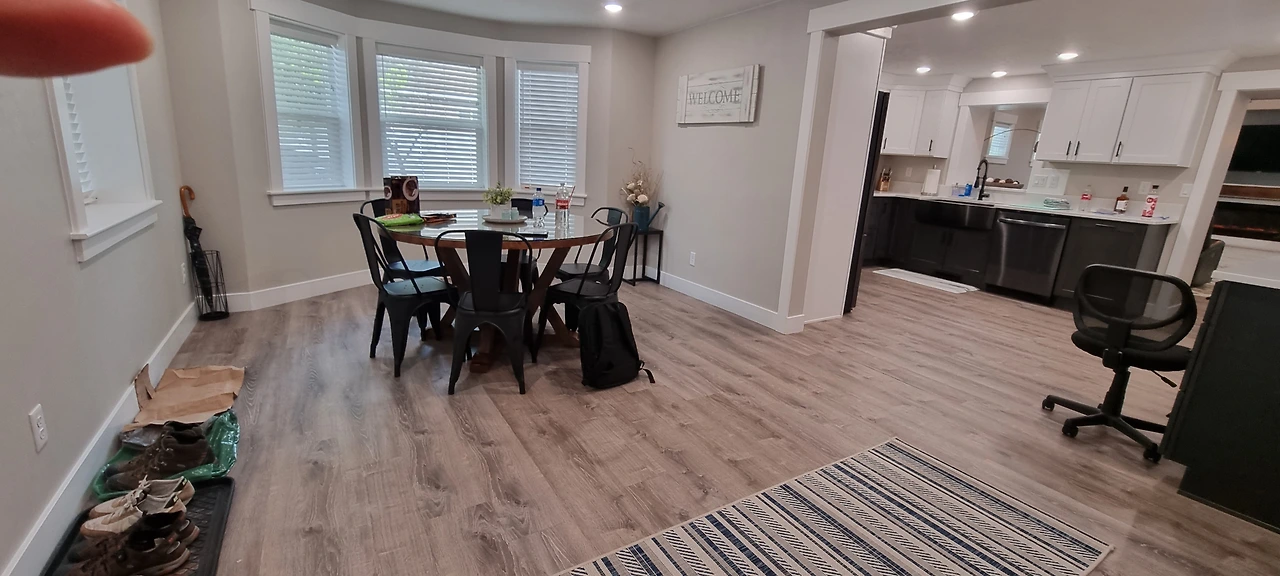 문을 여는 순간 와~감탄사가 절로 나왔다. 집도 크고 깨끗하고 가구 하나하나 럭셔리했다. 살고 싶은 집. 커피 차 과자 놀이기구 소파 위에 담요 작은 것 하나까지 신경을 많이 쓴 듯했다. 화장실 딸린 커다란 안방은 딸부부가 쓰고 중간방은 우리 부부가 작은방은 여니와 막내가 쓰기로 했다. 작은 방이라 해도 침대 2개가 들어가 있고 붙박이 장이 있으니 한국에 비하면 작은방은 아니다. 방거실 부엌 화장실등 곳곳에 수납장이 마련되어 있었다. 한 번쯤 살고 싶은 럭셔리한 하얀 집에 3박4일을 살게 되었다. 집구경을 흡족한 마음으로 한참을 하며 즐겼다.