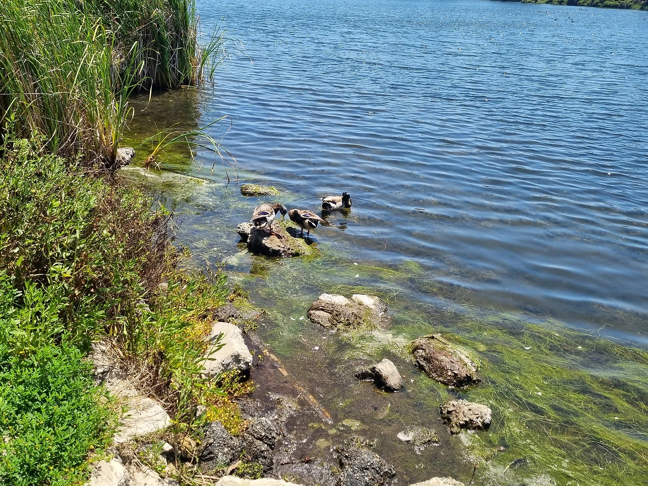 많은 오리들이 있었는데 역시 우리나라 오리보다 크다. 오리들이 물장난하는 것을 보고 있는데 하얀 두루미가 날아왔다.