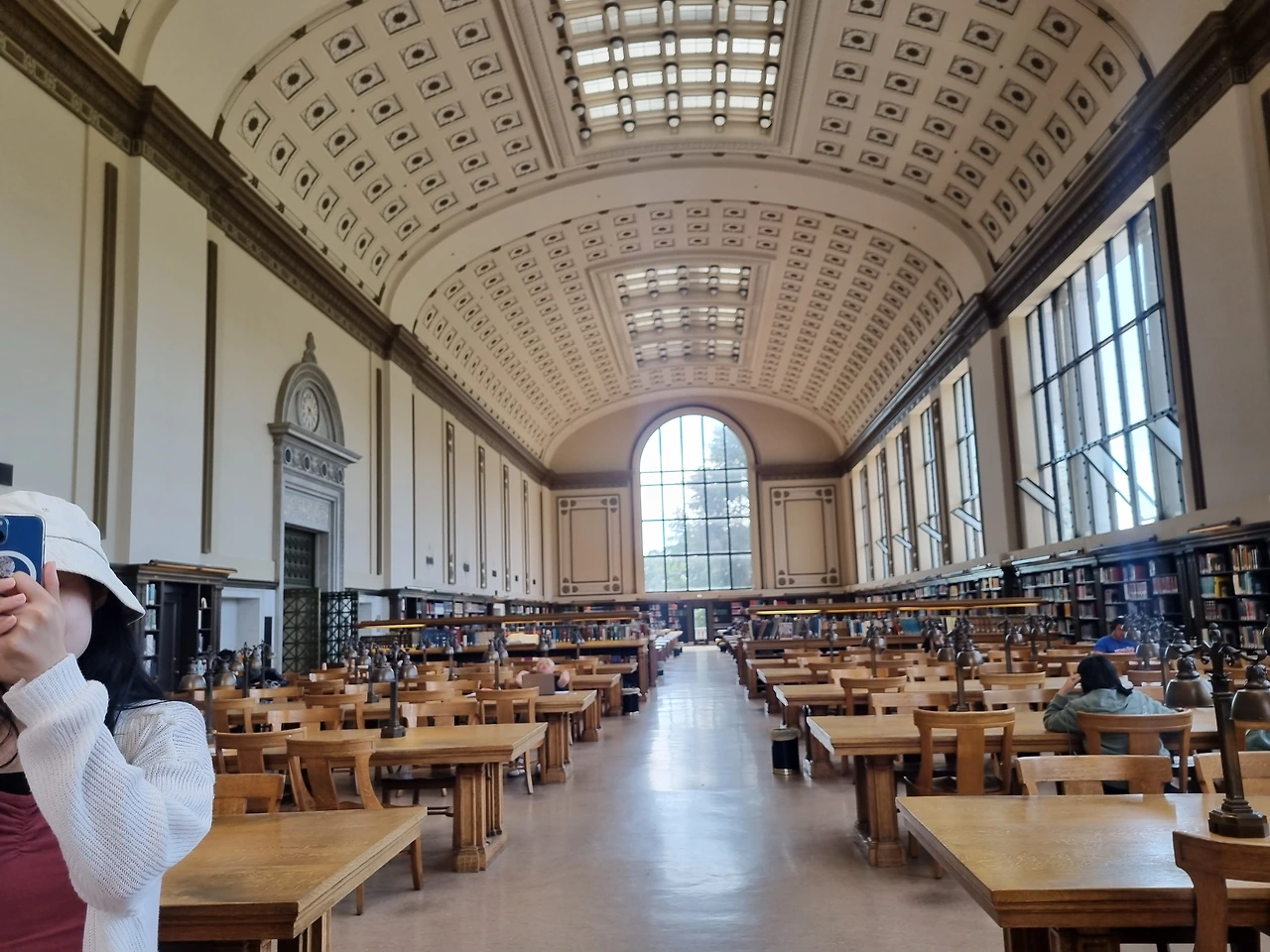 메인 도서관 입구에 들어서는 순간 입이 떡 벌어졌다. 대리석으로 된 웅장한 내부는 마치 미술관이나 박물관 같았다. 벽도, 천장도, 조명도 모두 예술이었다. 방학이라 공부하는 사람은 많지 않았지만, 일반인도 들어가 공부할 수 있다고 한다. 막내에게 “일주일 동안 도서관 다녀보라”고 했더니 하루는 공부하러 와보겠다고 했다. 진열된 책은 자유롭게 꺼내볼 수 있었다. 딸은 학기 중에는 자리가 없을 정도로 붐빈다고 했다. 다만 점심이나 화장실을 갈 때는 짐을 모두 들고 다녀야 한다는 점이 불편하다고 했다. 잔디밭 여기저기에는 벤치가 많아 학생들이 도시락을 먹고, 낮잠을 자고, 대화를 나누었다. 딸은 사위 도시락을 싸며 자기 것도 함께 준비해 온다고 했다. 지금 생각하니 구내식당을 한번 가볼 걸 싶다.