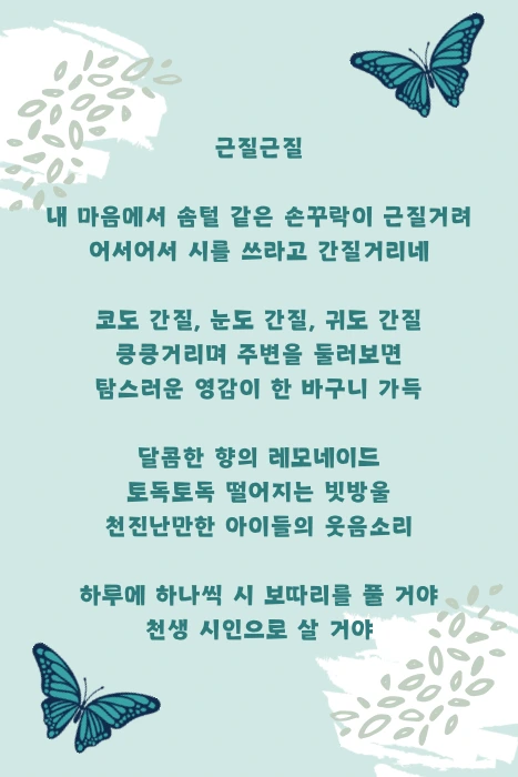 내 마음에서 솜털 같은 손꾸락이 근질거려