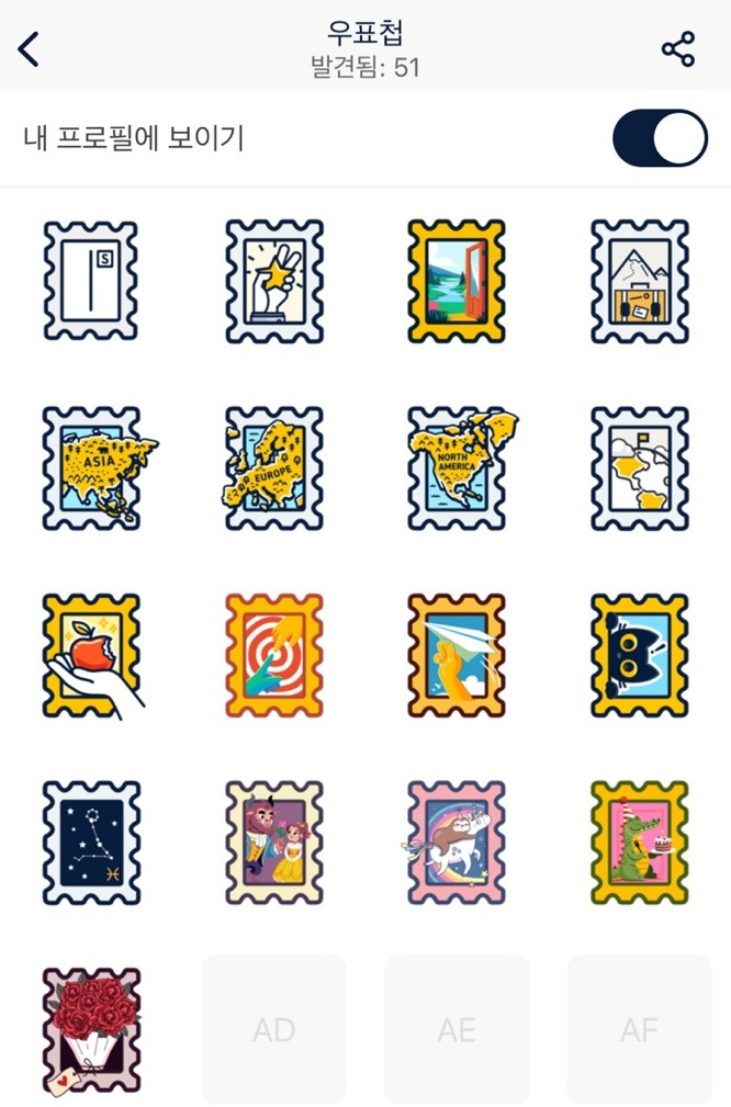 슬로울리앱의 가장 큰 장점은 전 세계 예쁜 우표를 모을 수 있다는 점이다. 비록 실물 우표는 아니지만 앱상에서 새로운 대륙이나 나라의 친구를 사귈 때마다 우표가 추가된다. 직접 해외 국가를 여행해도 우표가 추가되어서 편지를 주고받을 때 우표를 직접 붙여서 보낼 수 있다. 여러 가지 우표를 교환하는 재미가 쏠쏠하다. 또한 장점인지 단점인지 모르겠지만, 재밌는 포인트는 주고받는 메일이 사는 지역에 따라 배달 소요시간이 다르다는 점이다. 예를 들어 가까운 일본은 3~4시간이면 편지가 배달되지만 멀리 떨어진 유럽은 14시간, 미국은 이틀이 걸리는 식이다. 아날로그 감성이 물씬 묻어나서 기다리는 재미가 있다.