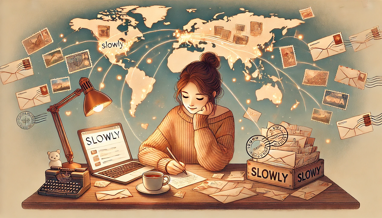 몇 년 전에는 앱스토어에서 검색하면 쉽게 찾을 수 있는 앱을 사용했었는데 사용이 복잡하고 인플루언서들처럼 뭔가 팔로워도 많아야 하고 인기도에 따라 차등이 주어지는 것 같아서 금방 탈퇴했다. 그러다가 몇 달 전에 다시 펜팔을 시작하고 싶어 다른 앱을 알아보다가 슬로울리 Slowly라는 앱을 알게 됐다. 그리고 지금까지 쭉 쓰면서 세 명의 펜팔친구와 편지를 교환하고 있다.