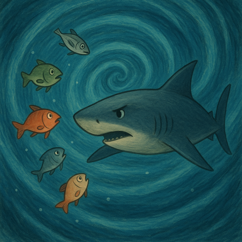 나를 조롱하고 욕하는 사람들도 있어. 혼자만 강한 척한다고, 다른 물고들을 잡아먹는다고. 하지만 이 또한 나만의 살아가는 방법이고 나는 내 환경 안에서 최선을 다하고 있어. 나도 배가 부를 땐 다른 물고기들을 해치지 않는다고. 조용히 바다를 헤엄칠 뿐이야.