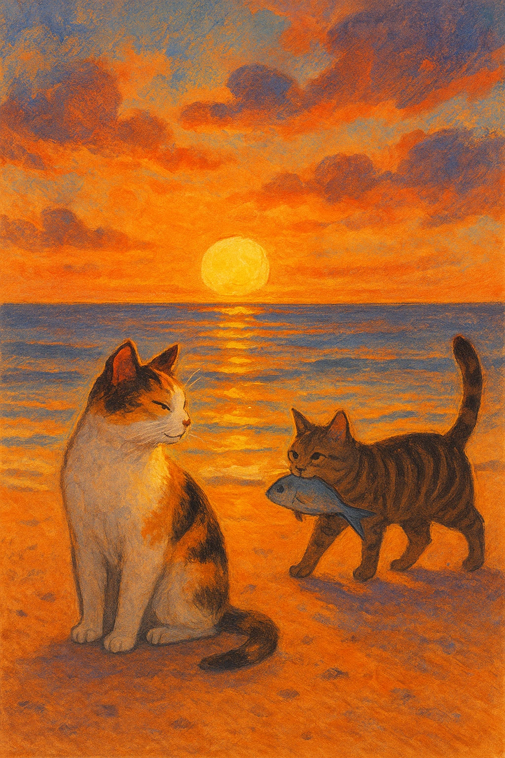 바닷가에서 생선을 물어오는 고양이가 더 좋아.