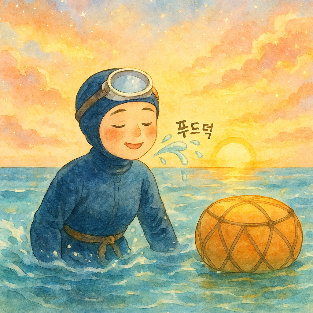 산 정상에서 사랑하는 사람과 바다를 바라보다