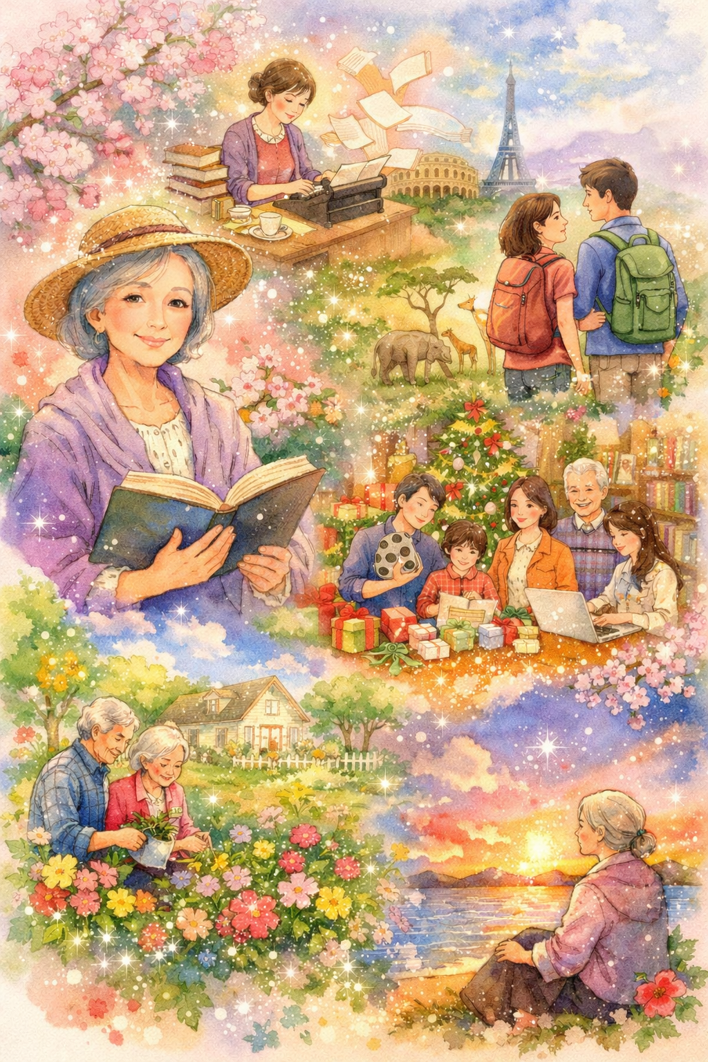 부모님도 10년 전에 차례차례 세상을 떠나고 지금은 남편과 자식들, 제자들이 전부야. 친구들도 하나둘씩 세상을 떠나기 시작했지. 난 이제 이렇게 풍성하게 가꿔온 내 삶에 여한이 없어. 내가 창작한 동화들, 나와 함께 성장해 온 제자들. 그리고 나의 아이들. 이 모든 것들에 감사해.