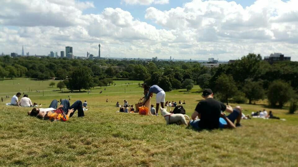 먼저, 프림로즈힐! 프림로즈힐은 런던 리젠트파크 안에 있는 곳인데, 덧붙여 말하자면 런던에는 한국 도심과 다르게 크고 넓은 공원이 정말 많다. 리젠트파크도 그 중에 하나이며 프림로즈힐은 리젠트파크 안에서도 유명한 곳이다. 프림로즈힐은 이름에서도 알 수 있듯이 언덕을 말하는데 도착하면 공원이 펼쳐진 경사진 언덕위에 수많은 사람들이 반려동물들과 함께 바람을 쐬며 쉬고 있는 모습을 볼 수 있다. 이곳에서 머무르면 서두르고 분주했던 여행의 일상에 작은 쉼표를 찍고 가는 기분이 들며 고국에 두고 온 많은 가족들과 친구들, 반려동물들과 함께 하지 못함이 아쉬운 마음이 스며들게 하는 그런 곳이다. 곳곳에서 샌드위치와 음료수도 팔고 있으니 함께 하며 푹 쉬어가도 좋고, 시간을 맞춰 일몰을 보고 가도 그 장관에 감동하는 곳이다.