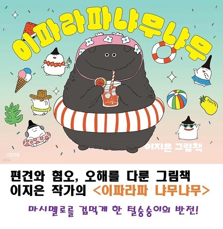 이와 비슷한 그림책으로 박정섭 작가의 <감기 걸린 물고기>가 있다. 둘 다 소문과 오해, 군중심리에 관한 그림책인데, 나는 오늘 읽은 이파라파 냐무냐무가 싱그러운 여름을 배경으로 그렸다는 점에서 요즘 날씨에 읽기 참 좋은 그림책이란 생각이 든다! 게다가 캐릭터들이 너무 알콩달콩 귀엽다! 그리고 털숭숭이는 덩치만 컸지 너무 불쌍하다ㅠㅠ