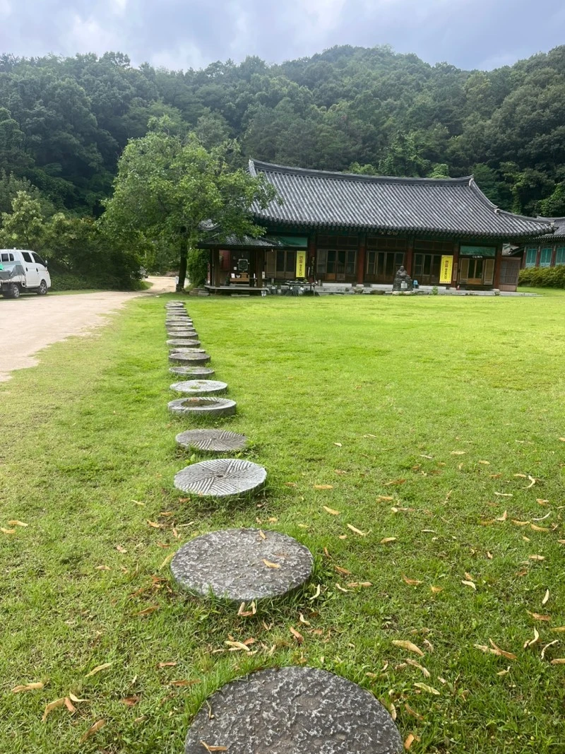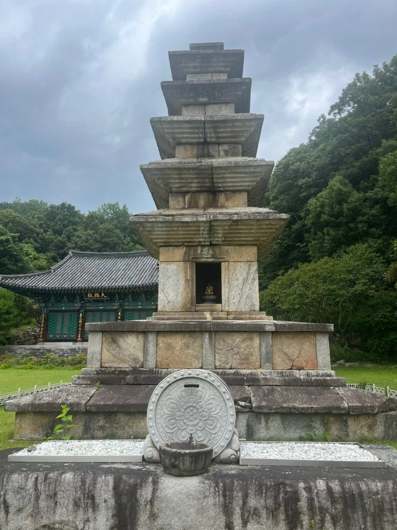 선생님은 종교가 없지만, 평소 불교에도 관심이 많아서 그런지 죽장사에 와서 아이들과 둘러보는 이 시간이 더없이 소중하고 경건하게 느껴졌어요. 비록 비가 오긴 했지만 푸른 하늘도 더더욱 높게 느껴졌고요.