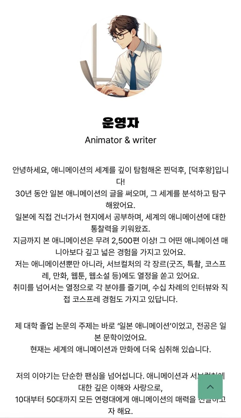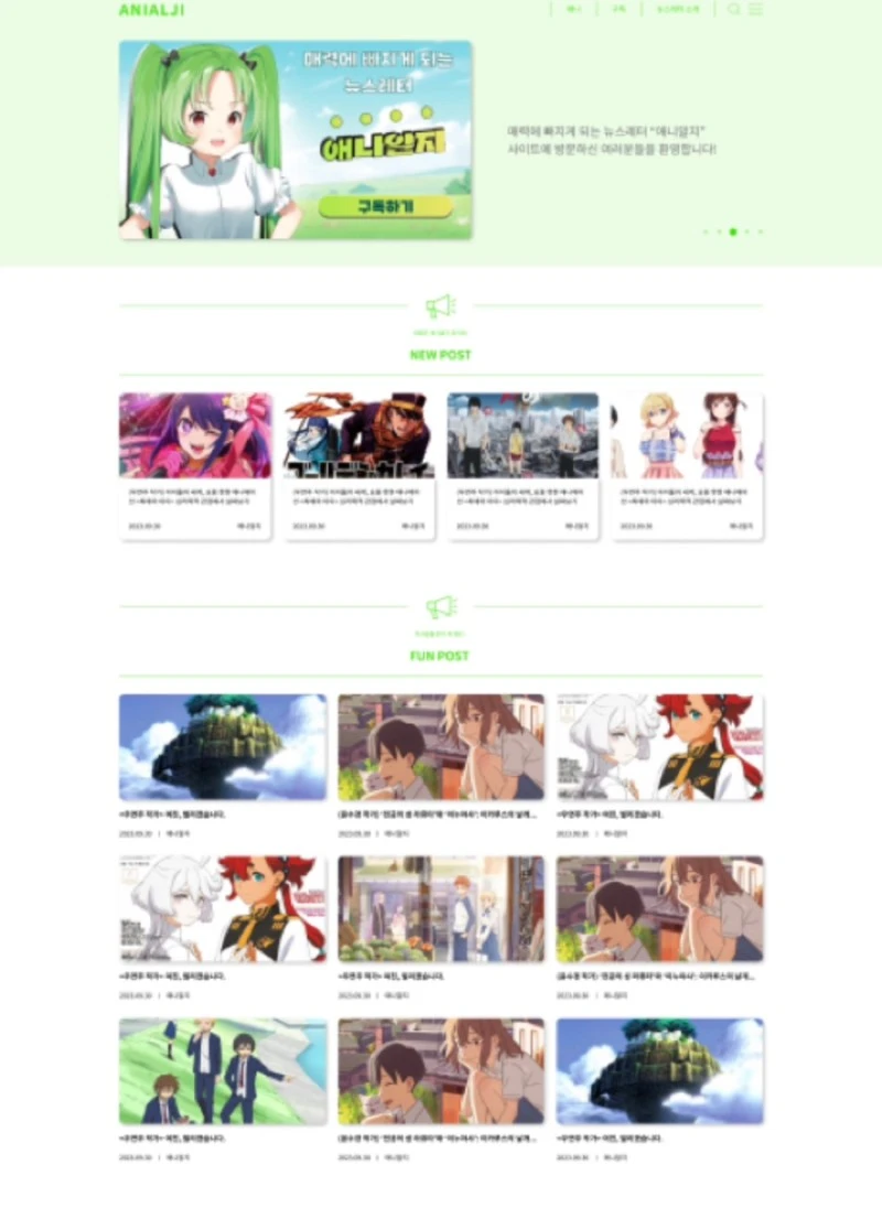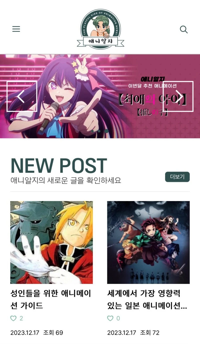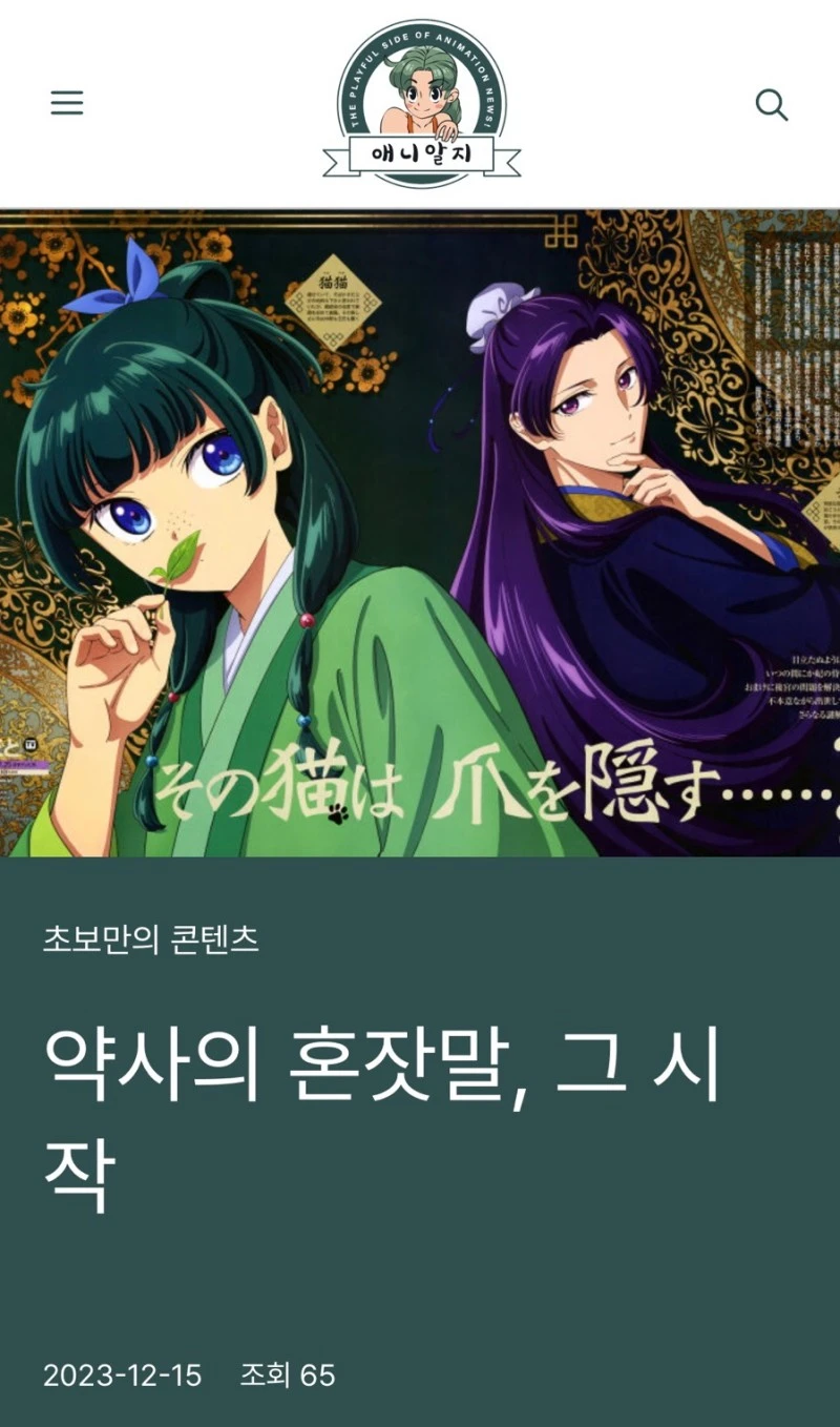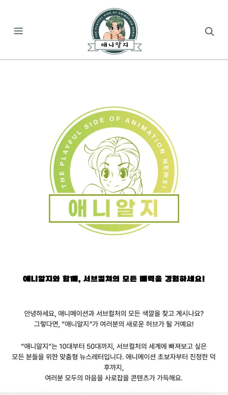 애니메이션을 소개하는 애니덕후들의 웹진 #애니알지 가 얼마 전에 오픈했습니다 저도 필진으로 참여하고 있어요~ 운영자님은 지금까지 본 애니만 2,500편 이상이라고 하니 믿고 보셔도 됩니다 저는 주로 지브리, 신카이 마코토의 애니와 만화책 원작의 애니를 많이 봤었는데 운영자님 덕분에 더 많이 알아가고 있어요~ 관심 있는 분들 놀러 오셔서 이메일 구독도 해주세요^^
