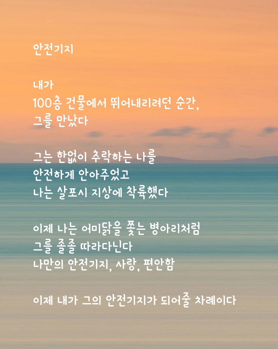 이제 내가 그의 안전기지가 되어줄 차례이다