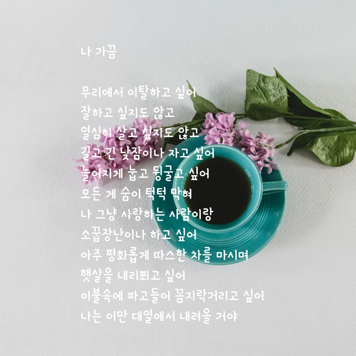 아주 평화롭게 따스한 차를 마시며