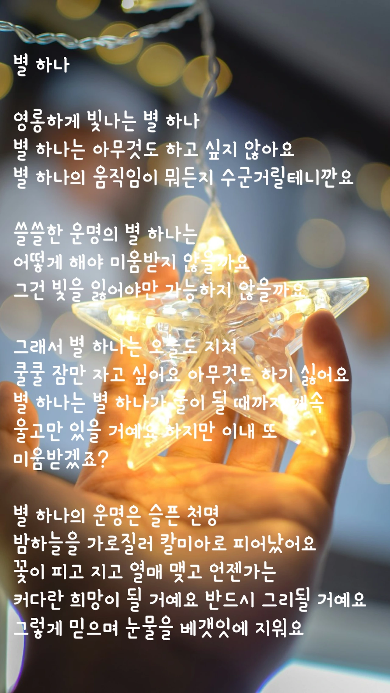 별 하나는 별 하나가 둘이 될 때까지 계속 울고만 있을 거예요 하지만 이내 또 미움받겠죠?