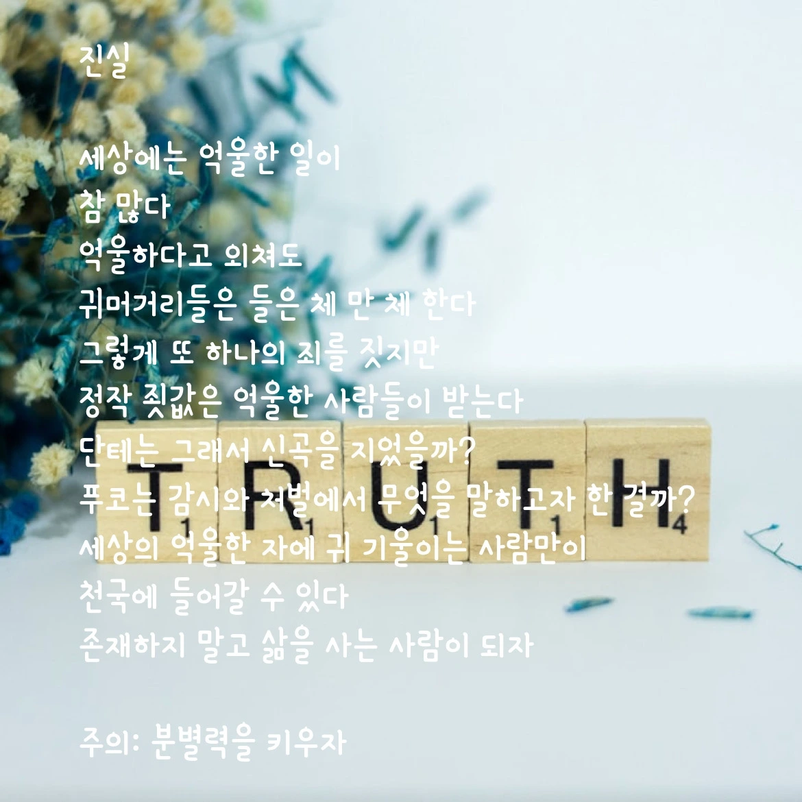 창조적인 사고와 깊은 감수성으로 세상을 바라보며, 예술과 창작의 기쁨을 즐깁니다. 함께 공감하고 행복을 나누고 싶습니다.