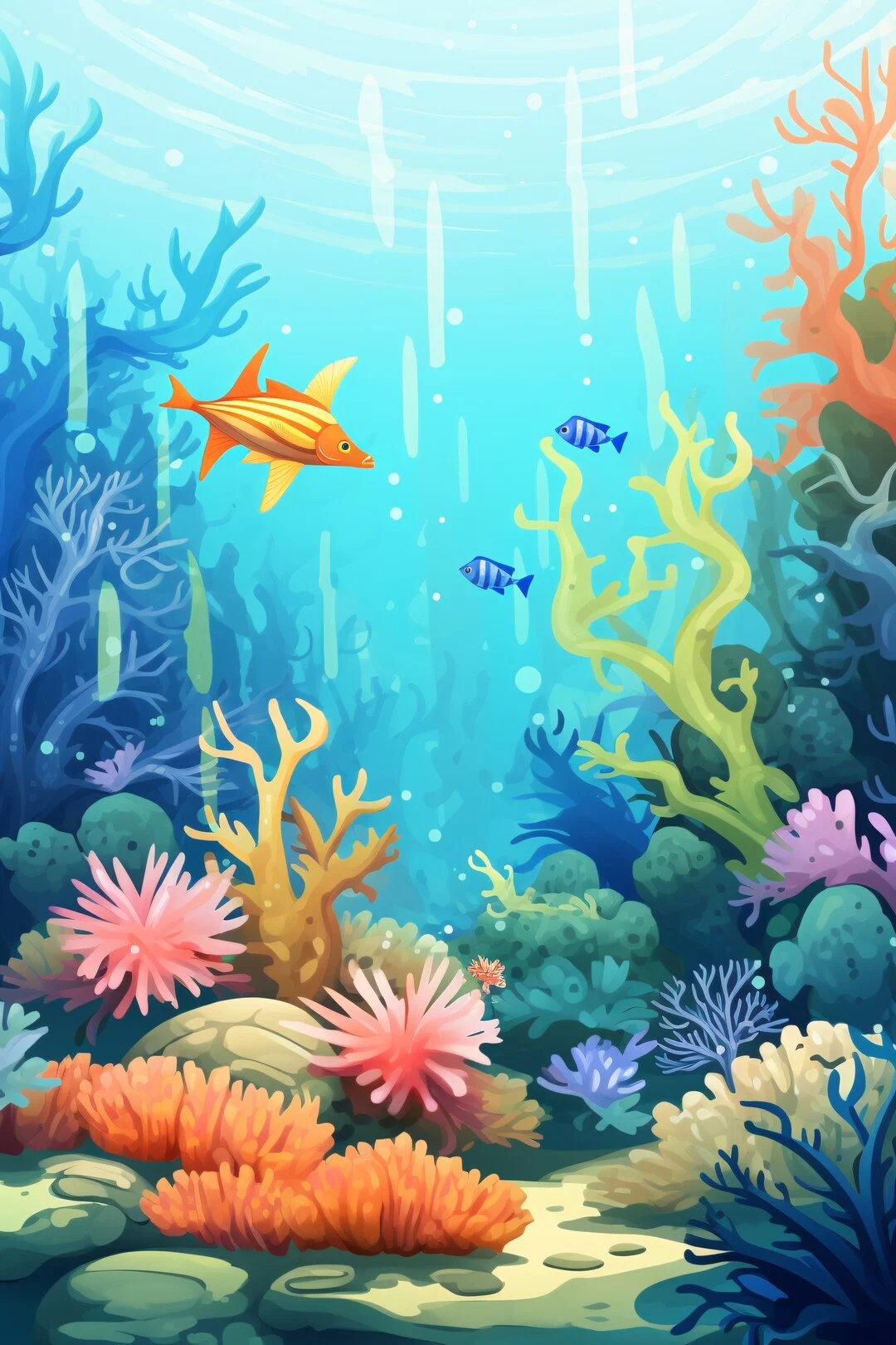 이제 바닷속 세상은 다시 여러 아름다운 물고기들의 다채로운 색깔로 가득 찼답니다. 다시 행복한 마을이 되었어요.