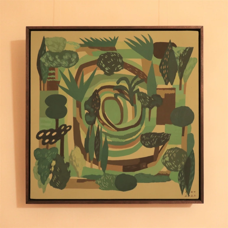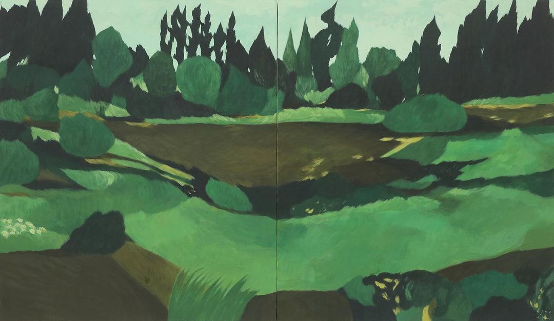 작가노트에 따르면 김현수 작가의 작업은 기억 속 장면을 예리하게 포착해 화면에 옮기는 것에서 시작됩니다. 무의식적으로 떠오르는 초록 들이 풀잎과 나무가 되고 들판이 되는 것입니다. 그것은 제주에서 자라난 작가가 어릴 적 푸른 자연에서 만난 짙은 초록을 온몸으로 받아들여 세상에 내놓은 결과물입니다.
