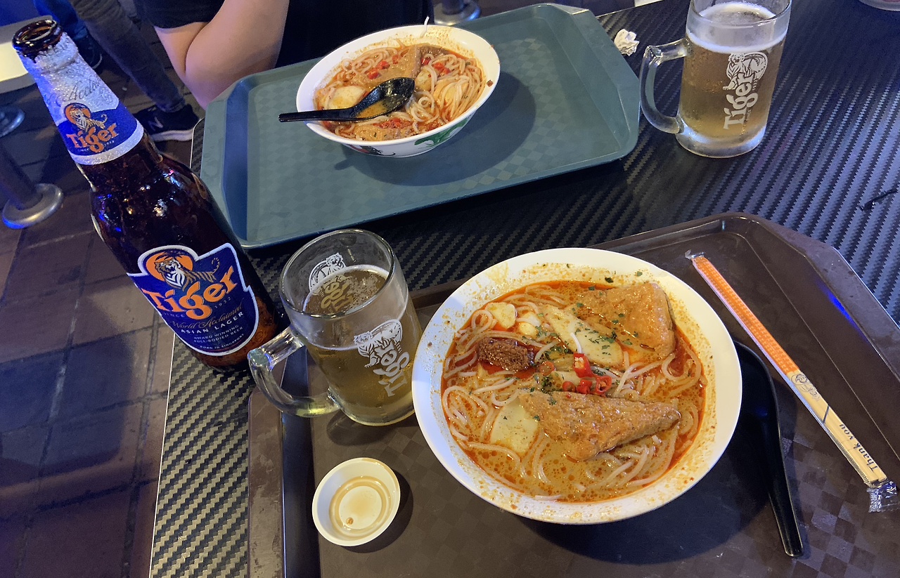 락사 한 그릇에 타이거 맥주, 밤 비행 랜딩 후 우리만의 ritual
