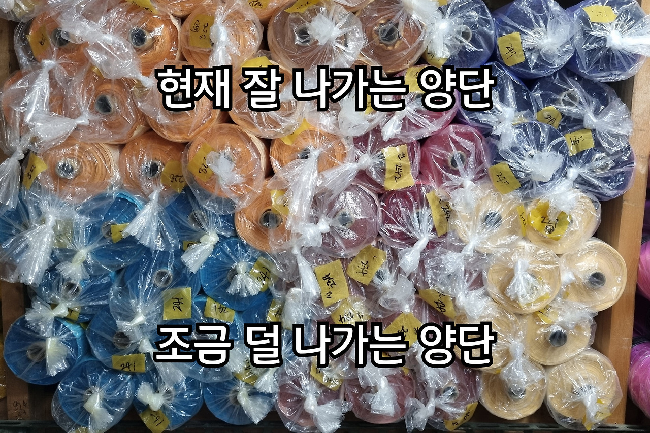 그리고 양단이 현재 얼마나 있는지 양단의 재고량은 컴퓨터의 한글에다가 양단재고표를 만들어서 작성했고, 만일의 사태를 대비해서 네이버 메모에도 양단재고표를 만들어서 작성했다. 그래서 양단이 나갈 때마다 양단재고표에 재고량을 체크하고 있다. 어느 색상이 잘 나가는지 보면서 한 번에 나가는 숫자와 몇 번에 한 번씩 주문이 오는지 대략적인 흐름도 파악한다면 재고가 소진되어 갈 시 새로 입고해야 할 타이밍도 파악할 수 있다.
